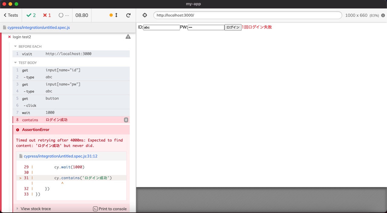 위의 화면은 pass의 경우입니다. fail의 경우도 확인해 봅시다.