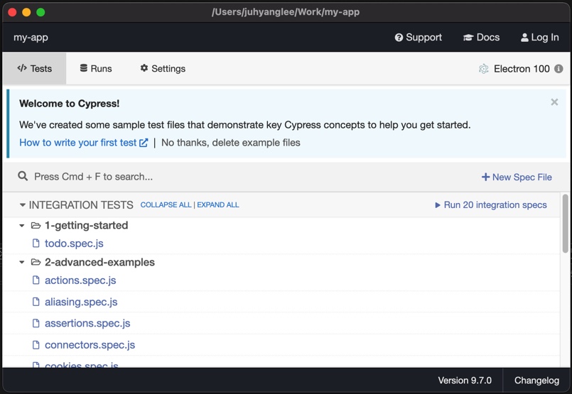 ✔ Verified Cypress! /Users/juhyanglee/Library/Caches/Cypress/9.7.0/Cypress.app
